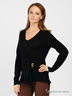 Стильный пуловер с длинным рукавом и V-образным вырезом горловины. Изделие выполнено из шерстяного эластичного трикотажа. Декоративная имитация пояса. Отличный вариант на каждый день.