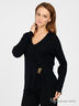 Стильный пуловер с длинным рукавом и V-образным вырезом горловины. Изделие выполнено из шерстяного эластичного трикотажа. Декоративная имитация пояса. Отличный вариант на каждый день.