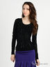 Стильный пуловер свободного силуэта из трикотажа средней плотности. V-образный вырез горловины, длинный рукав и низ на манжете. Полочка и рукава декорированы стразами. Отличный вариант для создания повседневного образа.