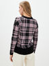 Вязаный пуловер в клетку.Изделие выполнено из теплой пушистой пряжи с добавлением эластана. Крой свободный. V-образный вырез горловины. Спущенные плечи. Длинные рукава. Края связаны широкой резинкой.
