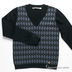 Стильный классический пуловер для мальчика, с V-образным вырезом горловины. Спереди изделие украшено в крупный ромб, сзади в полоску. Манжеты рукавов и низ изделия оформлены в рубчик. Стиль модели - повседневный.
