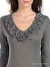 Детали: V-образный вырез; длинный рукав с манжетой в рубчик; полочка декорирована трикотажной нашивкой с бусинами; низ изделия дополнен трикотажной резинкой