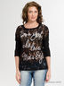Пуловер с рукавами 3/4 и округлым вырезом горловины. Модель прямого кроя дополнена спереди вставкой из полупрозрачного материала. Отличный вариант на каждый день.