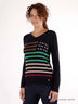 Разноцветный прямой пуловер с длинными рукавами и V-образным вырезом. Украшен 6 рыбками.