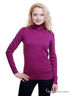 Однотонный пуловер с высоким воротником и длинными рукавами.