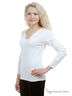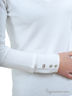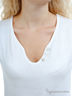 Однотонный пуловер с вырезом-капелькой спереди, 3 пуговицами на вырезе и 4 пуговицами внизу рукавов. Боковые разрезы 6 см для размер. 50-52