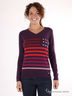 Разноцветный прямой пуловер с длинными рукавами и V-образным вырезом. Украшен 6 рыбками.