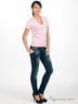 Детали: V-образный вырез, короткие рукава, вырез, низ и манжеты - трикотажная резинка