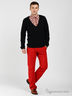 Стильный пуловер свободного кроя с длинным рукавом и V-образным вырезом. Выполнен из эластичного трикотажа средней плотности. Манжеты и нижняя резинка в рубчик. Отличный вариант на каждый день.