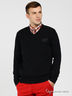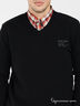 Стильный пуловер свободного кроя с длинным рукавом и V-образным вырезом. Выполнен из эластичного трикотажа средней плотности. Окантовка выреза, манжеты и нижняя резинка в рубчик. На полочке и плечах нашивки. Отличный вариант на каждый день.