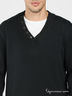 Стильный пуловер свободного кроя с длинным рукавом и V-образным вырезом. Выполнен из эластичного трикотажа средней плотности. Манжеты и нижняя резинка в рубчик. Окантовка выреза дополнена декоративными пуговицами. Отличный вариант на каждый день.