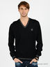 Эффектный пуловер из полушерстяного материала средней плотности с V-образным вырезом горловины и длинным рукавом. Полочка украшена фигурной вязкой и небольшой вышивкой. Будьте неповторимым!