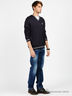 Эффектный пуловер из полушерстяного материала средней плотности с V-образным вырезом горловины и длинным рукавом. Полочка украшена фигурной вязкой и небольшой вышивкой. Будьте неповторимым!