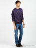 Модный пуловер из полушерстяного материала средней плотности с V-образным вырезом горловины и длинным рукавом. Полочка украшена принтом. Яркий вариант на каждый день.