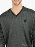 Эффектный пуловер из полушерстяного материала средней плотности с V-образным вырезом горловины и длинным рукавом. Полочка украшена фигурной вязкой и небольшой вышивкой. Будьте неповторимым!