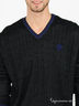 Эффектный пуловер из полушерстяного материала средней плотности с V-образным вырезом горловины и длинным рукавом. Полочка украшена фигурной вязкой и небольшой вышивкой. Будьте неповторимым!