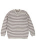 Пуловер прямого кроя с длинным рукавом, V-образным вырезом. Принт в полоску.