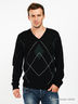Классический пуловер из мягкого шерстяного трикотажа. V-образный вырез горловины, манжеты и низ из рельефного трикотажа. Стильный принт ромбы-аргайл на полочке. Отличный вариант на каждый день!