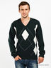 Классический пуловер из мягкого шерстяного трикотажа. V-образный вырез горловины, манжеты и низ из рельефного трикотажа. Стильный принт ромбы-аргайл на полочке. Отличный вариант на каждый день!