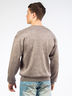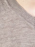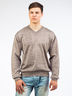 Пуловер мужской однотонный свободного силуэта средней плотности. Полочка выполнена фактурной вязкой в виде ажурных ромбов. Рукав длинный. Вырез горловины V-образный. Низ изделия и рукавов оформлены трикотажной резинкой.