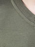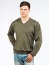 Пуловер мужской однотонный свободного силуэта выполнен вязкой средней плотности. Рукав длинный. Вырез горловины V-образный. Низ изделия и рукавов оформлены трикотажной резинкой.