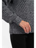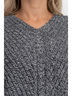 Восхитительный пуловер свободного силуэта графитового цвета с вывязаным рисунком "косы". Пуловер выполнен в технике «ручного вязания» из натуральных хлопковых нитей. Изделие с V-образным вырезом горловины. Низ рукавов и низ изделия обработаны "резинкой". Втачные рукава со спущенной линией проймы.