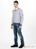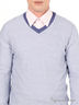 Детали: V-образный вырез; окантовка выреза, манжеты и нижняя резинка в рубчик