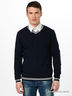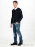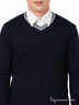 Детали: V-образный вырез; окантовка выреза, манжеты и нижняя резинка в рубчик, дополнены контрастными полосами