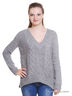 Объемный пуловер крупной вязки с узором «косы» согреет в холода! V-образный вырез, манжеты и низ связаны резинкой. Боковые разрезы, удлиненная спинка. Длина размера М ок.74 см, разница в 2 см между размерами.
