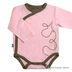 Распашонка прямого силуэта с V-образным вырезом горловины, запахом и длинным рукавом. Боковые застежки на кнопки и классическая боди-застежка на кнопки в пройме. Полочка декорирована вышивкой. Контрастная окантовка.