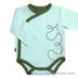 Распашонка прямого силуэта с V-образным вырезом горловины, запахом и длинным рукавом. Боковые застежки на кнопки и классическая боди-застежка на кнопки в пройме. Полочка декорирована вышивкой. Контрастная окантовка.
