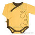 Распашонка прямого силуэта с V-образным вырезом горловины, запахом и длинным рукавом. Боковые застежки на кнопки и классическая боди-застежка на кнопки в пройме. Полочка декорирована вышивкой. Контрастная окантовка.