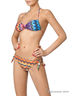 Оригинальная молодёжная пляжная двойка. Бюст - удобное бандо типа рюкзак, со съёмными плавающими чашечками, фиксируется на теле тонкими завязками-спагетти. Плавки - бразильяно анатомического кроя с полуоткрытой линией по задним деталям и декоративными съёмными галстуками по бокам. Купальник выполнен в технике строгого поместного расположения принта в уникальной гамме многослойных цветовых переходов.