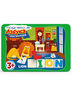 Магнитные цифры и буквы можно прикреплять не только к металлической коробке, но и к любым другим металлическим поверхностям. Когда ребенок освоит задания, входящие в комплект, можно придумывать новые задания и составлять из английских букв другие слова, пополняя словарный запас. В набор входят дополнитеьные магниты с базовыми словами и яркими рисунками.Состав: 66 магнитных букв, 13 цифр, 26 игровых заданий, счетный материал - 27 магнитных элементов