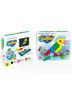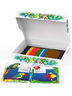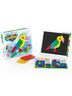 Яркий набор, состоящий из магнитных геометрических фигур разных цветов и форм, металлического поля для игры и буклета с примерами картинок.