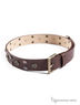 Стильный ремень, выполненный из искусственной кожи. Изделие по всей длине декорировано металлическими клепками с изображением логотипа производителя. Ремень послужит стильным аксессуаром к одежде вашего ребенка.