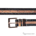 Ремень из натуральной кожи, сочетающий два контрастных цвета, с деталями из золотистого металла.