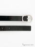 Стильный ремень из лакированной кожи. Оригинальная овальная пряжка серебристого цвета.