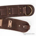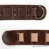 Оригинальный широкий ремень из натуральной кожи темно-коричневого цвета. Декорирован бронзовыми клепками. Удобная пряжка с крепежом на штырях. Смелая и яркая модель прекрасно подойдет женщинам, которые не бояться выделяться из толпы.