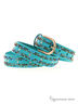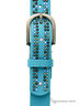 Женский ремень бирюзового цвета от бренда DISPACCI. Дизайнерский ремень в стиле "casual". Гладкая, прямая полоса ремня из натуральной высококачественной кожи, усыпанная стразами, клепками и бусинками. Размер регулируется за счет болта. Цвет фурнитуры - черненое серебро. неверояно модный аксессуар на сезон весна-лето 2014! Такой ремень найдет достойное место в гардеробе каждой девушки! Прекрасно подойдет к брюкам и джинсам, а также украсит платье или тунику!