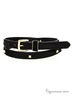 Женский ремень черного цвета из натуральной кожи. Подчеркнуть стройность и изящество фигуры вам помогут узкие ремешки от бренда Dispacci. Размер регулируется за счет болта. Цвет фурнитуры - серебро. Прямая полоса ремня, классическая миниатюрная пряжка. Ремень в сезоне весна лето 2014, это стильный акцент вашего наряда! Отличное дополнение к платью или тунике, а также к брюкам или юбке.