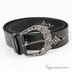 Дизайнерская модель ремня выполнена из натуральной кожи с ажурным тиснением на коже, пряжка и сам ремень украшен стразами, по полосе украшение из металла и страз. Самая изысканная модель для современных модниц. Ремень можно носить и на талии, и на бедрах.