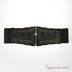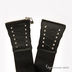 Стильный широкий ремень на резинке. Оригинальная комбинация искусственной кожи и текстиля. На кожаных вставках выполнены металлические полые заклепки, через которые пролета шнуровка. Застежка на молнию.