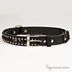 Узкий ремень с металлическими заклепками и пайетками. Пряжка прямоугольная, декорирована стразами. По периметру отстрочка нитью.