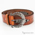 Дизайнерская модель ремня выполнена из натуральной кожи с ажурным тиснением на коже, пряжка и сам ремень украшен стразами, по полосе украшение из металла и страз. Самая изысканная модель для современных модниц. Ремень можно носить и на талии, и на бедрах.