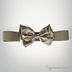 Женский ремень на резинке с кокетливым бантом. Эффектное комбинирование текстиля и искусственной кожи. Атласный бант на пряжке. Застежка с помощью крючка, имеется 1 отверстие.