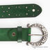 Дизайнерская модель ремня выполнена из натуральной кожи с ажурным тиснением на коже, пряжка и сам ремень украшен стразами, по полосе украшение из металла и страз. Самая изысканная модель для современных модниц. Ремень можно носить и на талии, и на бедрах.