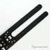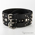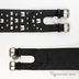 Широкий ремень на двух застежках, декорирован круглыми и конусообразными заклепками серебряного цвета.