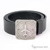 Эксклюзивный ремень из натуральной кожи черного цвета. Металлическая пряжка темно-серебряного цвета с изображением самолёта внутри компаса.