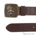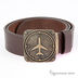 Эксклюзивный ремень из натуральной кожи коричневого цвета. Металлическая пряжка темно-золотого цвета с изображением самолёта внутри компаса.
